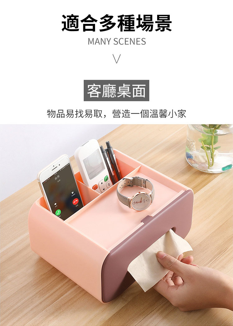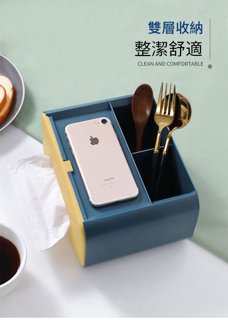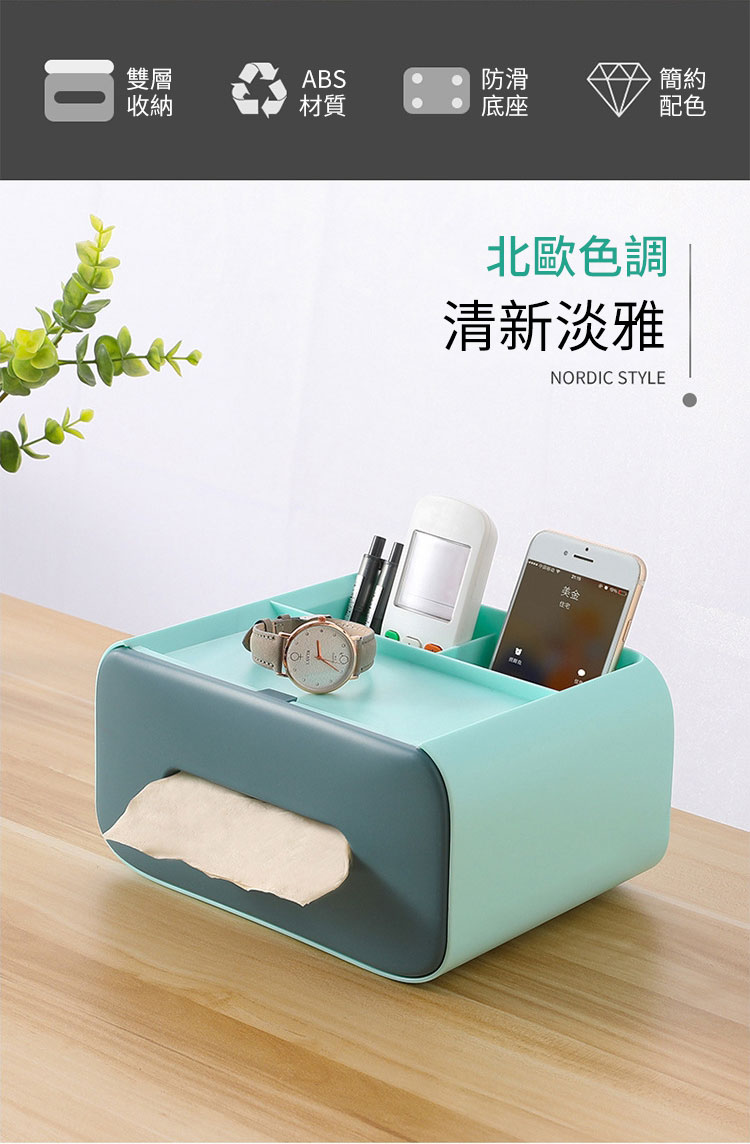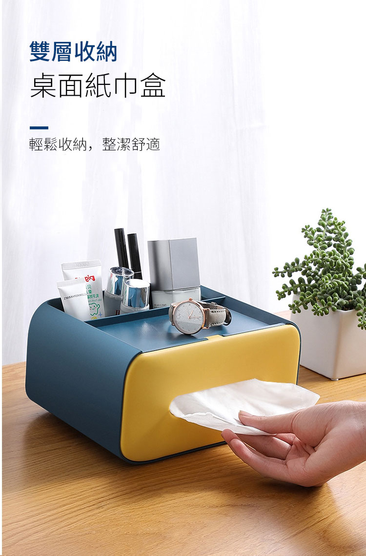 新款桌面雙向收納紙巾盒,有效節省空間適用抽取式衛生紙,將手機、手錶、遙控器、衛生紙完美收納,保持桌面整潔!雙層收納衛生紙盒的衛生紙開口寬大好抽取,輕鬆開蓋方便替換,底部防滑設計,可以收納家裡的小雜物,材質堅韌耐用,防水防潮,適用於多場合是它的優點!