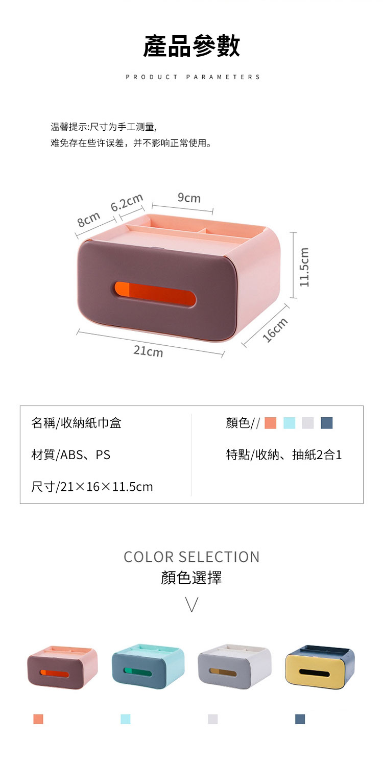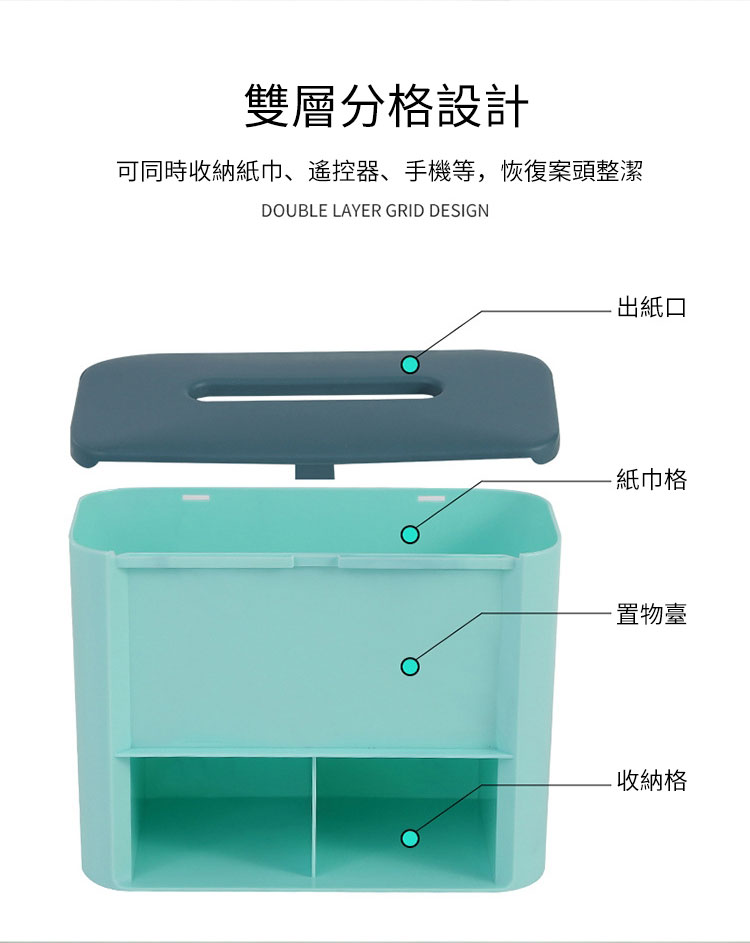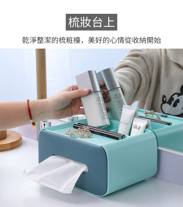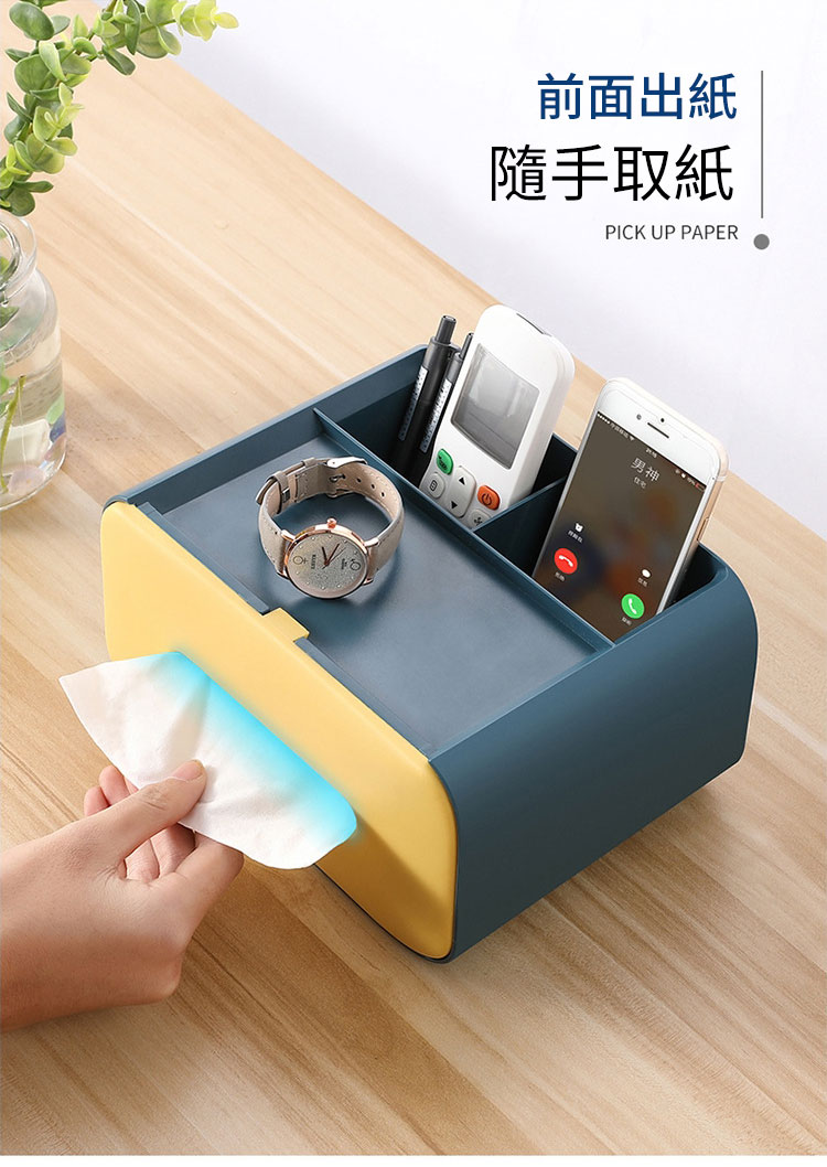 新款桌面雙向收納紙巾盒,有效節省空間適用抽取式衛生紙,將手機、手錶、遙控器、衛生紙完美收納,保持桌面整潔!雙層收納衛生紙盒的衛生紙開口寬大好抽取,輕鬆開蓋方便替換,底部防滑設計,可以收納家裡的小雜物,材質堅韌耐用,防水防潮,適用於多場合是它的優點!